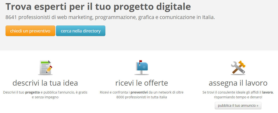 Elenco delle ultime richieste di lavoro freelance: Uno dei più famosi portali per cercare lavoro come freelance. Con ben 18 milioni di utenti registrati è veramente un punto di riferimento per un freelance. Informazioni Selezione Offerte Lavoro Grafico Freelance"
